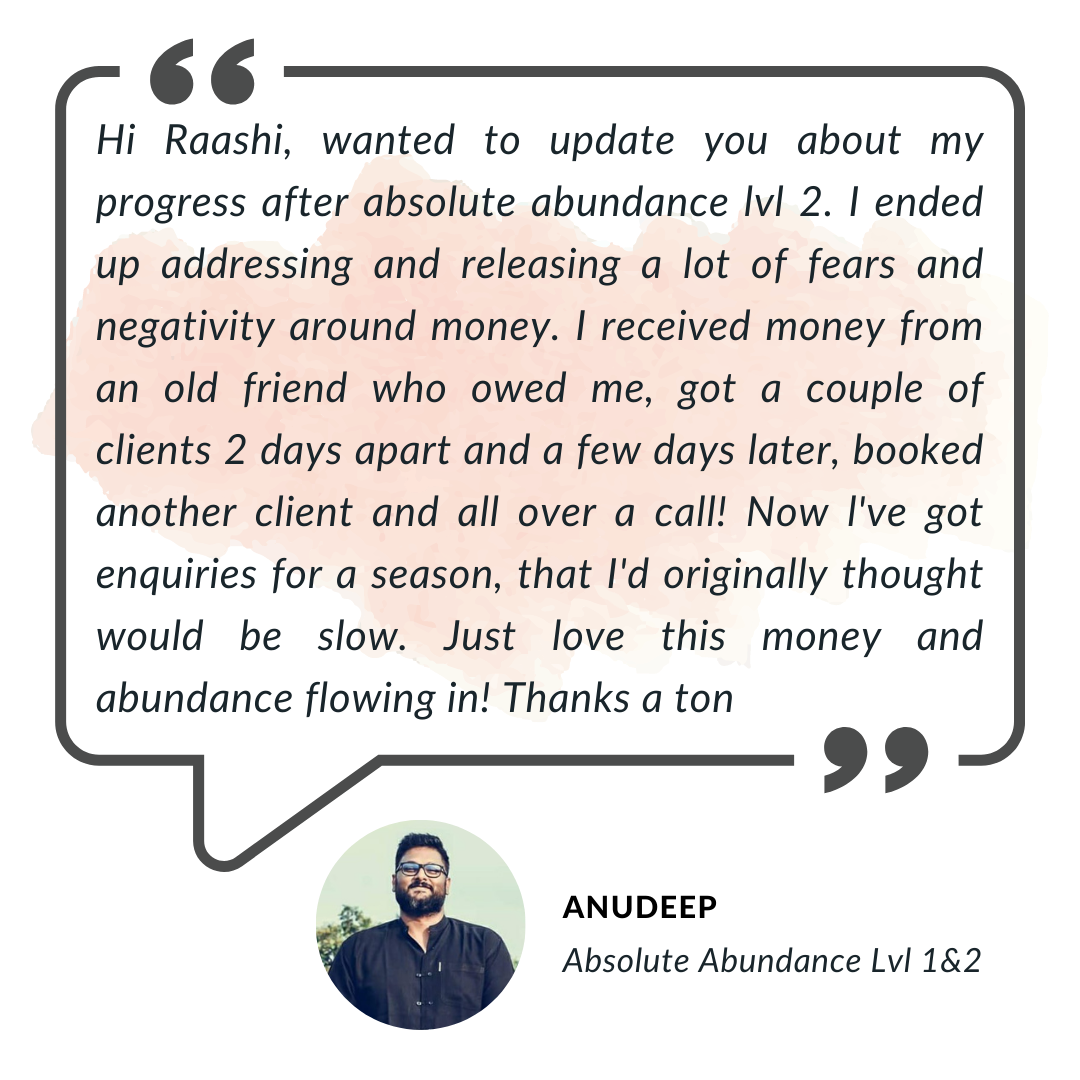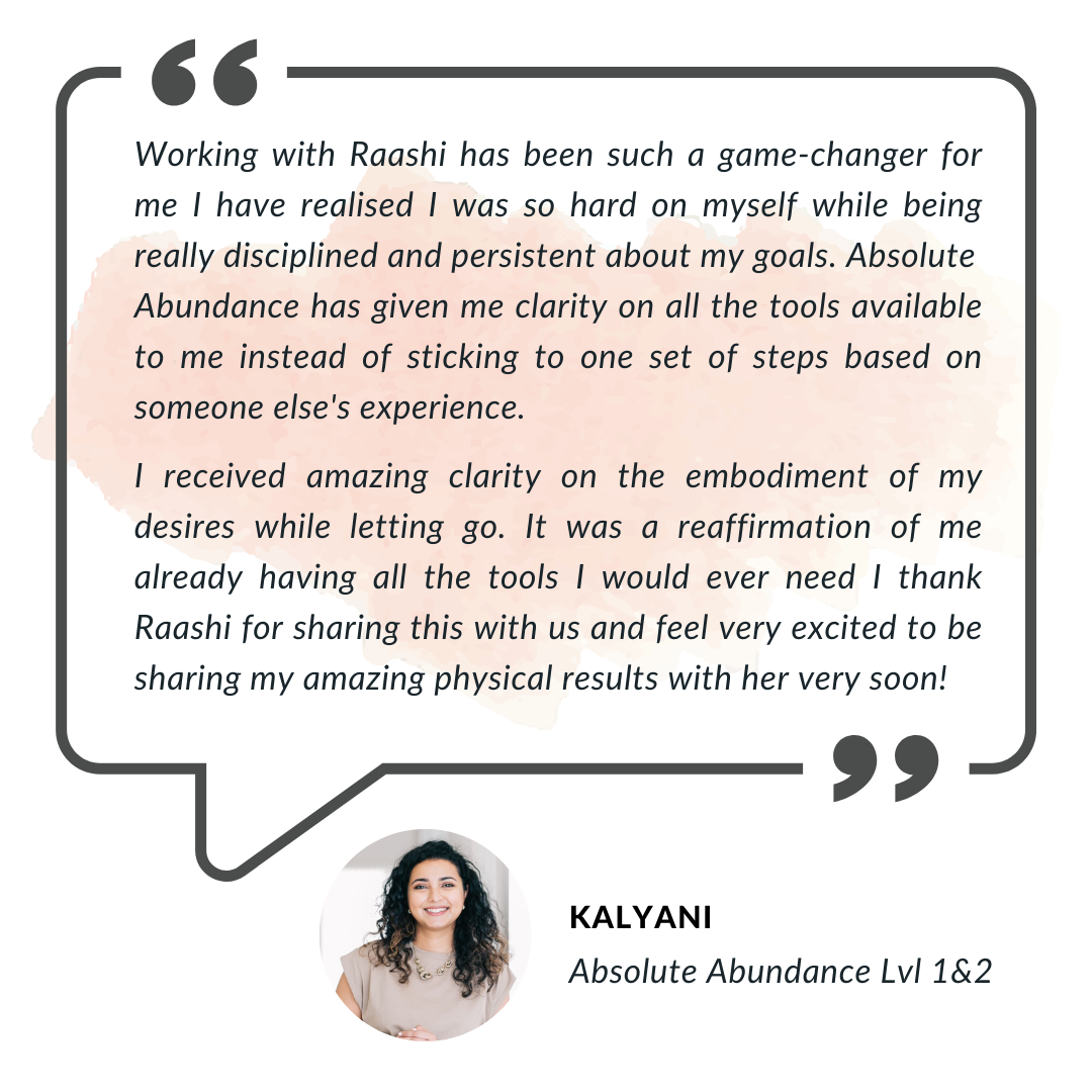 Abundance comes before money. Abundant wealth is a natural outcome of an abundant mind. Learn what we truly mean by Abundance & how to tune into the frequency of it, to live in Abundance every day of your life!- BONUSES:> Exclusive money rituals guide.> Lifetime access to Coaching videos.> 30 minute 1:1 with Raashi post the workshop.